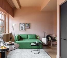Each apartment is slightly different, with the cotton factory’s original features and large windows creating a contemporary, warehouse-style feel. The sleek, black kitchens are fully equipped with designer cooking gear and all the appliances you need. And – in true Locke style – each apartment has its own comfy green sofa for lounging and Netflix-ing on.