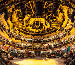 Situated in the heart of Manchester, the Royal Exchange Theatre contains some of the most unusual and attractive spaces in the North West. Convenient for all major road, rail and air connections, the Theatre is also within walking distance of several of the City's top hotels. It is well situated for a wide range of cultural attractions, sports facilities and quality shopping. The Theatre itself offers a varied programme of plays, concerts, and other special events, which provide the ideal opportunity for you to enjoy a tailor-made theatre entertainment package including catering. The Royal Exchange Theatre is a seven-sided, glass-walled capsule, literally suspended from huge marble pillars situated in the Great Hall of the Exchange. The unique design means all seats are less than nine metres from the circular stage giving views from all angles. Our policy is to express the bewildering, complex wonderment of life through the full spectrum of theatre.